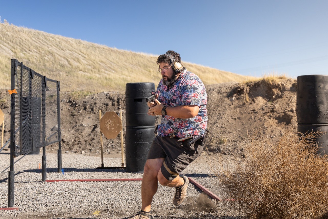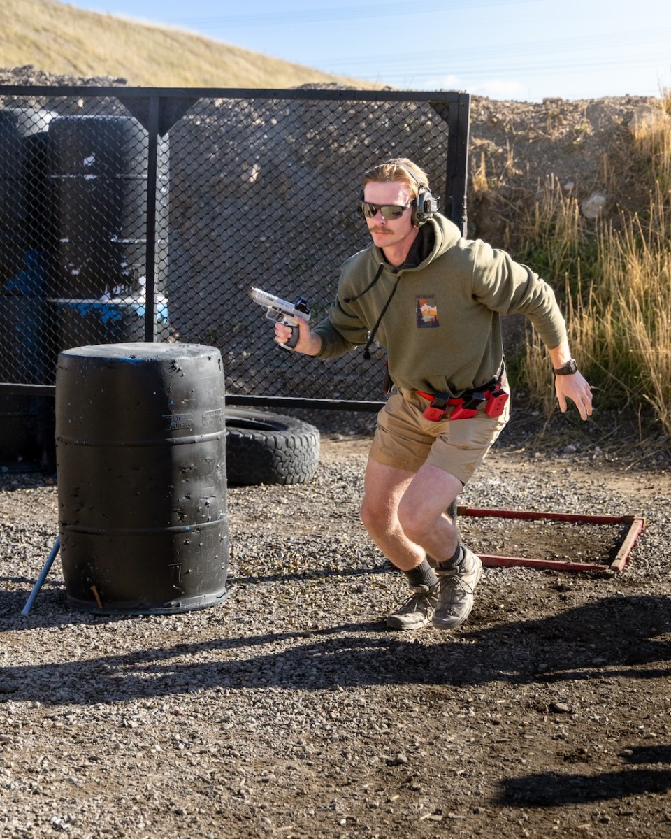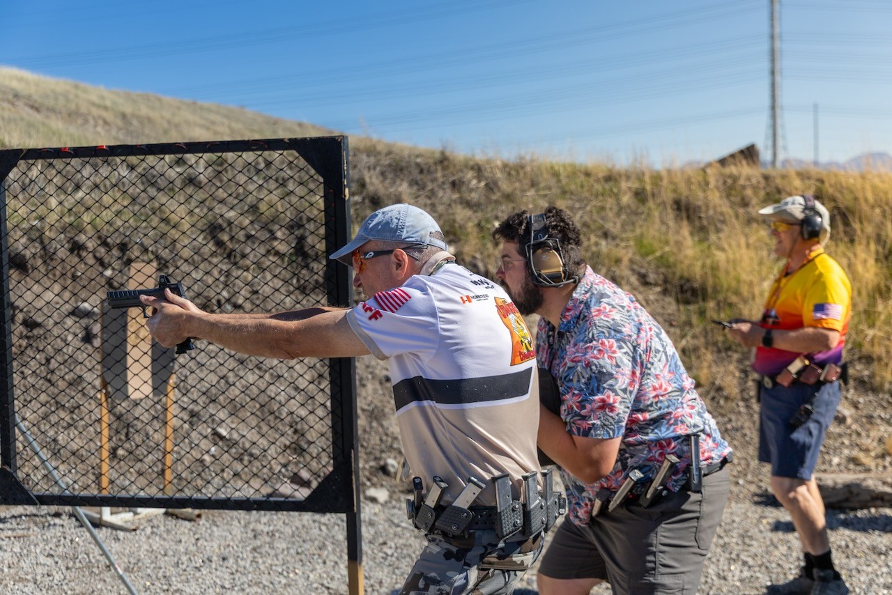 Today was a perfect fall day for a match. We had 138 people over the course of two days. One of the fun bits was Travis created a stage that forced everyone to stay inside the fault lines. They put a tumbleweed blocking the path of anyone trying to leave the shooting area. It was an excellent use of a prop to compel or limit movement.