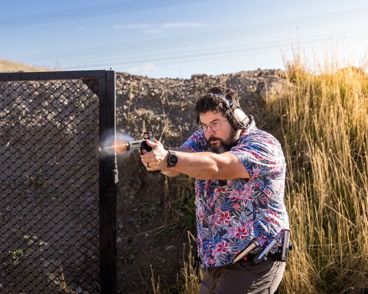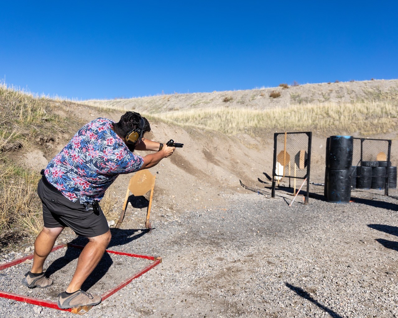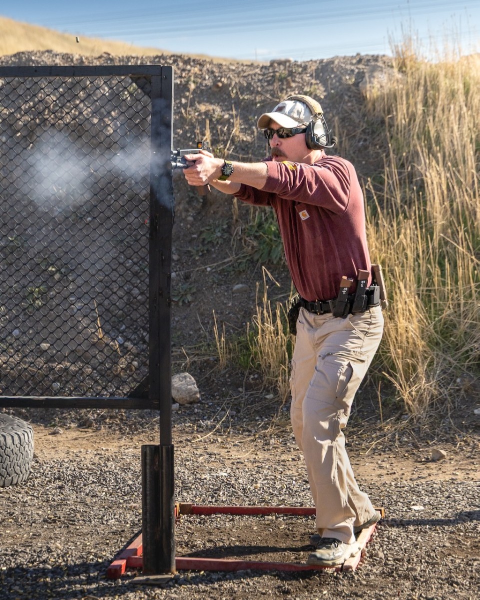 Today was a perfect fall day for a match. We had 138 people over the course of two days. One of the fun bits was Travis created a stage that forced everyone to stay inside the fault lines. They put a tumbleweed blocking the path of anyone trying to leave the shooting area. It was an excellent use of a prop to compel or limit movement.